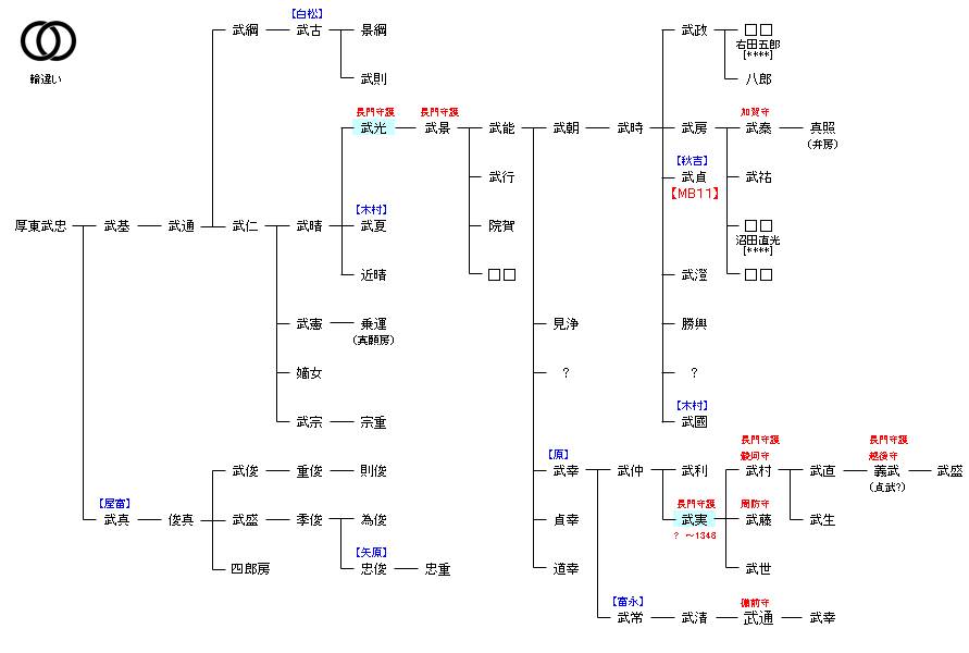 平安時代末期から鎌倉時代初期にかけての武将。厚東氏7代当主。後に剃髪し、念西と号した。長門国厚狭郡郡司。厚東左衛門太夫。源平争乱以前の長門守護職・押領使であったといわれる。 『源平盛衰記』によれば、源平合戦においては平氏に味方し、後に源氏に属したという。寿永3年(1184年)1月(旧暦)の一ノ谷の戦いに際し、諸国から摂津国一ノ谷の陣に馳せ参じた「平家年来伺候人」の中に見える「厚東入道武道」なる人名はこの武光であるとされている。しかし、平氏が衰勢に傾きつつあった文治元年(1185年)以降には、長門・周防の他の多くの諸族に同じく厚東氏も源氏になびいたとされる(壇ノ浦の戦いで長府串崎の船頭衆を斡旋するなど厚東氏は源氏に協力したという)。 子の武景は鎌倉幕府の御家人であったと考えられているが、武光の代で御家人になったかは定かではない。正確な没年は不明である。 後の厚東氏累代の居城・霜降城を本拠である棚井に創築した。