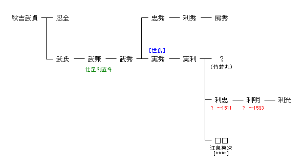 物部十市根 ― 物部麻佐 ― 厚東武忠 ― 秋吉武貞