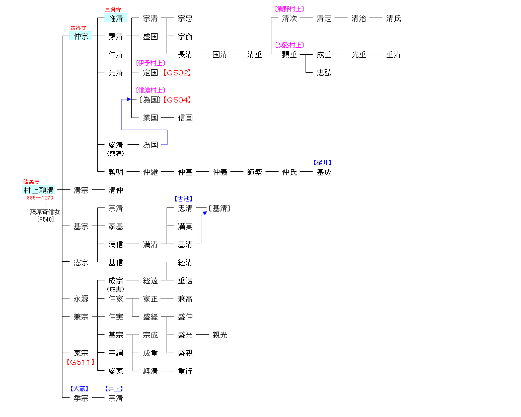 | G201:源 頼信 | 源 経基 ― 源 頼信 ― 村上頼清 | G501:村上頼清 |