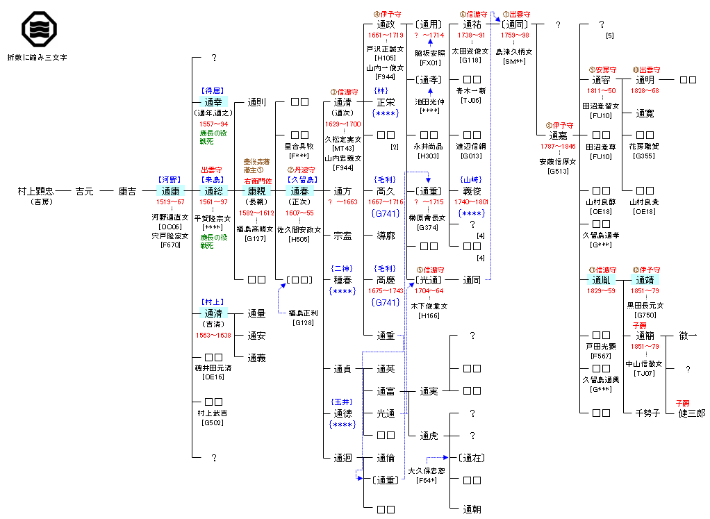 G502:村上定国  源 経基 ― 源 頼信 ― 村上頼清 ― 村上定国 ― 村上顕忠 G503:村上顕忠