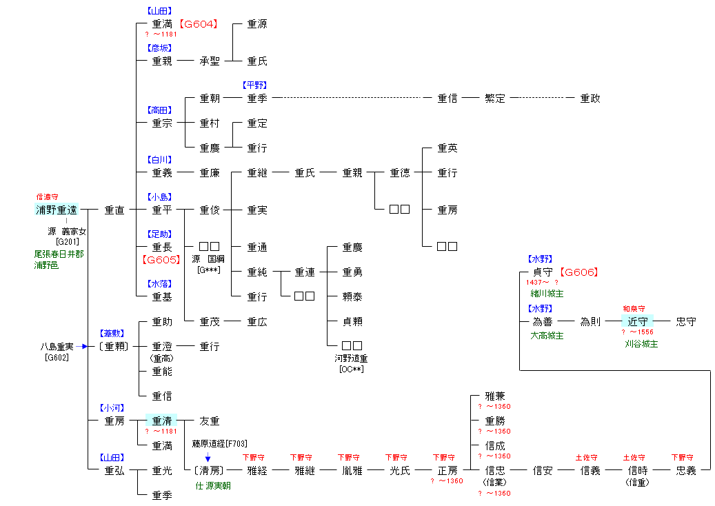 | G602:八島重実 | 源 経基 ― 源 満政 ― 八島重実 ― 浦野重遠 | G603:浦野重遠 |
