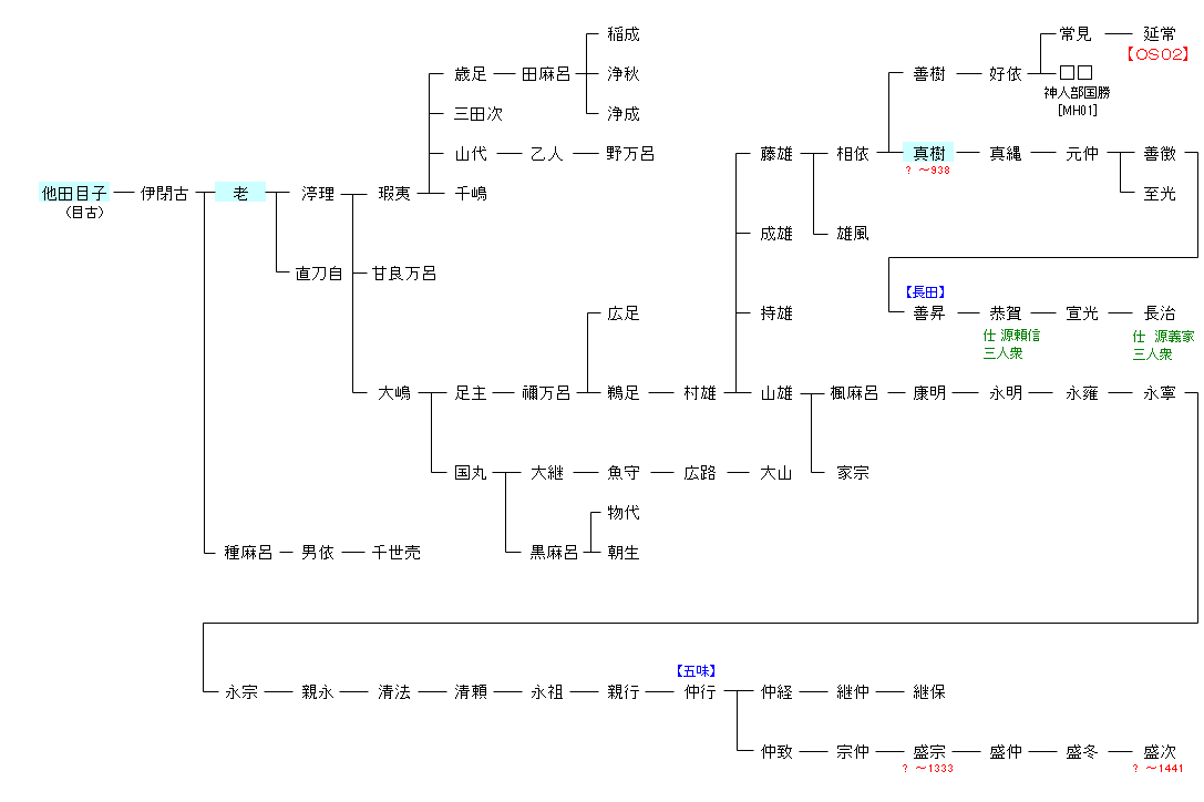 | K002:神八井耳命 | 神八井耳命 ― 他田目古 | OS01:他田目古 |