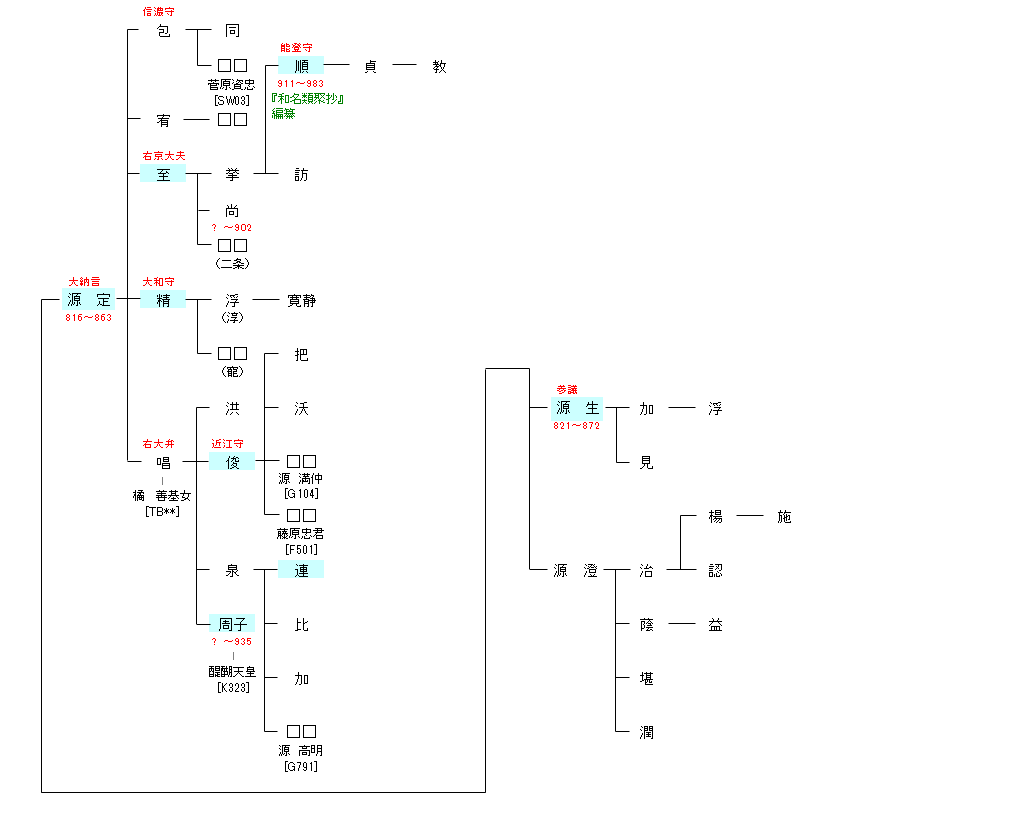 | K316:嵯峨天皇 | 嵯峨天皇 ― 源 定/生/澄 | G004:源 定/生/澄 | ● |