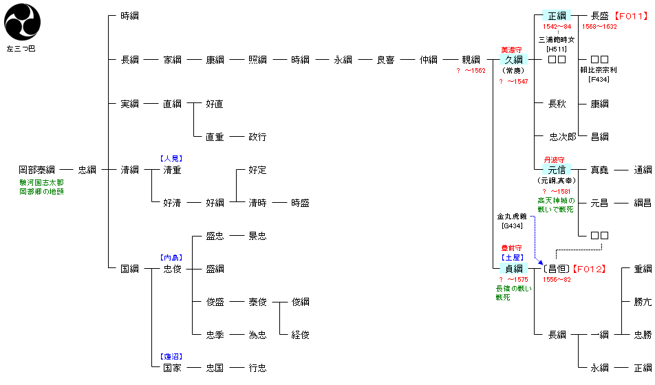 | F008:入江維清 | 藤原武智麻呂 ― 藤原乙麻呂 ― 藤原為憲 ― 入江維清 ― 岡部泰綱 | F010:岡部泰綱 |