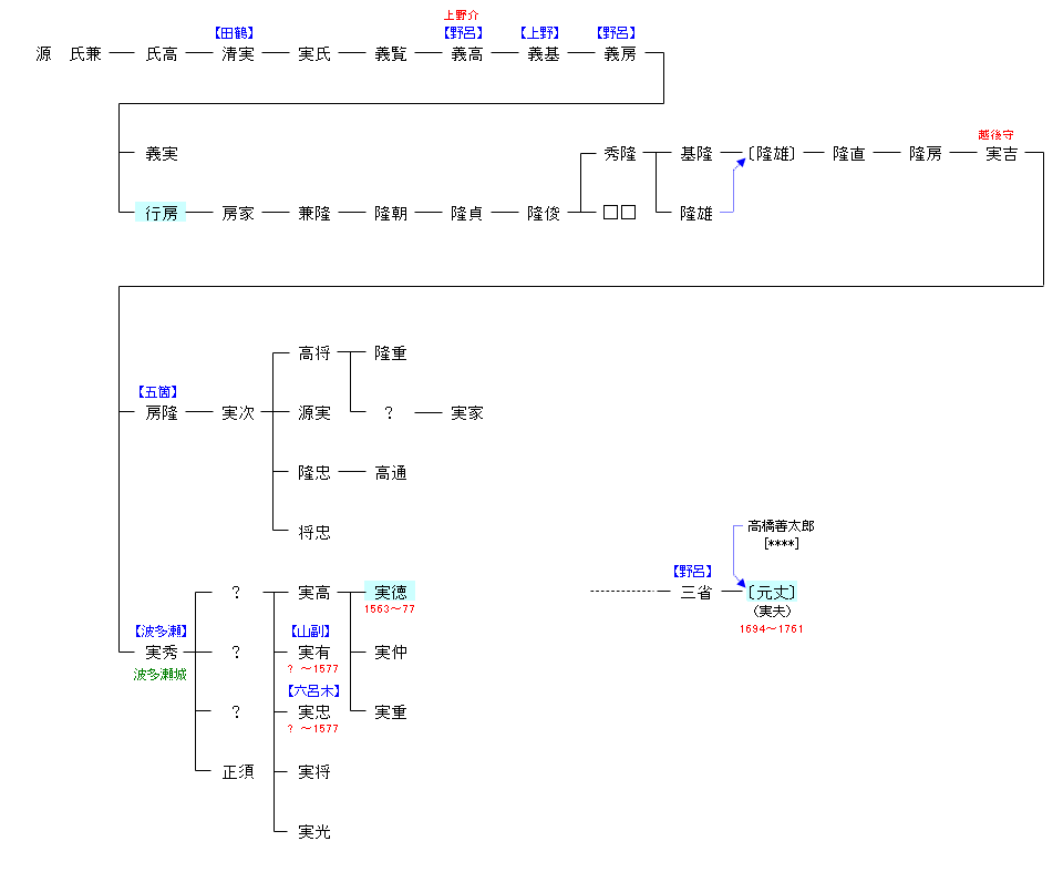野呂氏は文徳天皇の皇子惟喬親王を祖とし、その子・兼実王が野呂氏を称して臣籍降下したのに始まる一族である。行房は、その子孫である野呂上野介義高の曾孫であり、野呂義房の子、兼実王からは8代のちの子孫になる。
