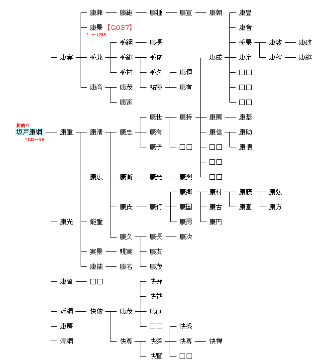 | G035:坂戸近康 | 源 能有 ― 坂戸章経 ― 坂戸近康 ― 坂戸康綱 | G036:坂戸康綱 |