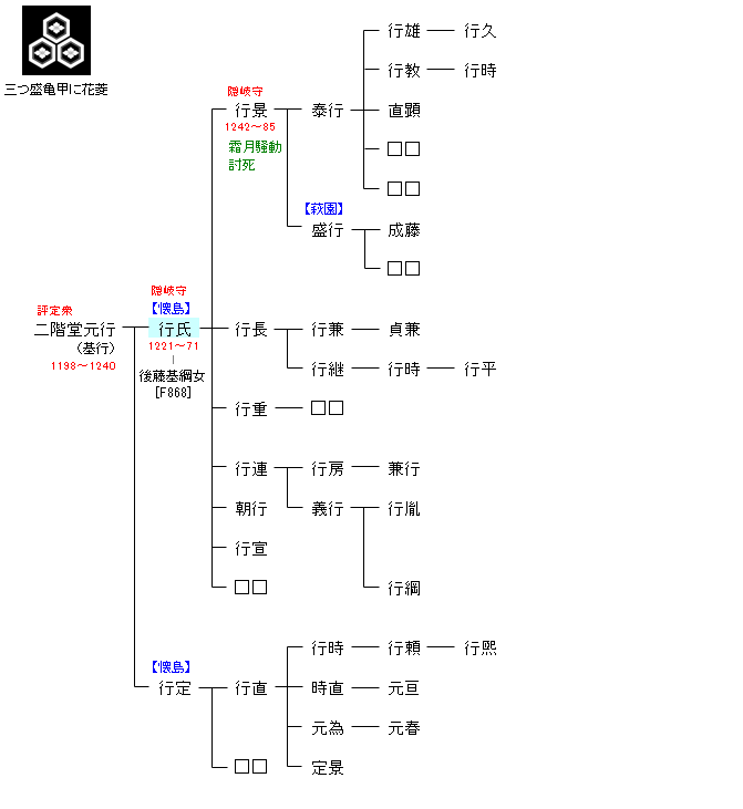 藤原武智麻呂 ー 藤原乙麻呂 ー 藤原為憲 ー 二階堂行政 ー 二階堂元行