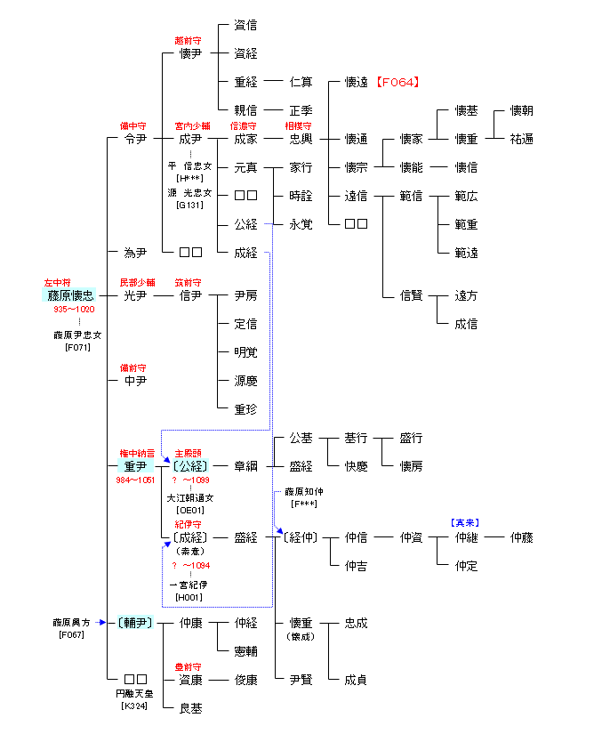 | F062: 藤原黒麻呂 | 藤原武智麻呂 ― 藤原巨勢麻呂 ― 藤原黒麻呂 ― 藤原懐忠 | F063:藤原懐忠 |