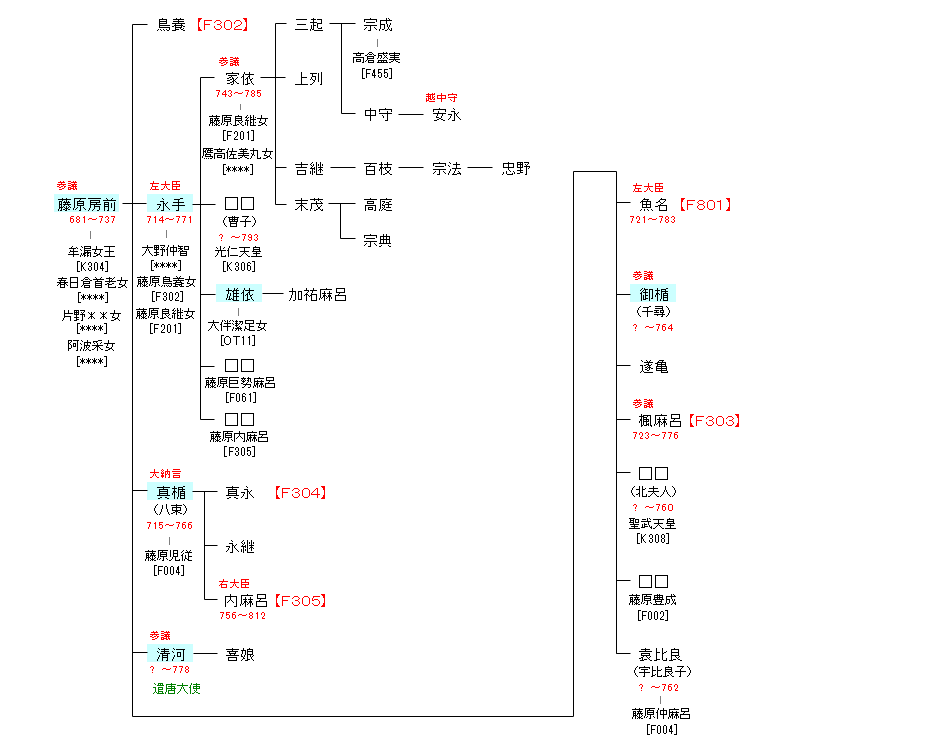 | F001:藤原鎌足 | 藤原鎌足 ― 藤原房前 | F301:藤原房前 |