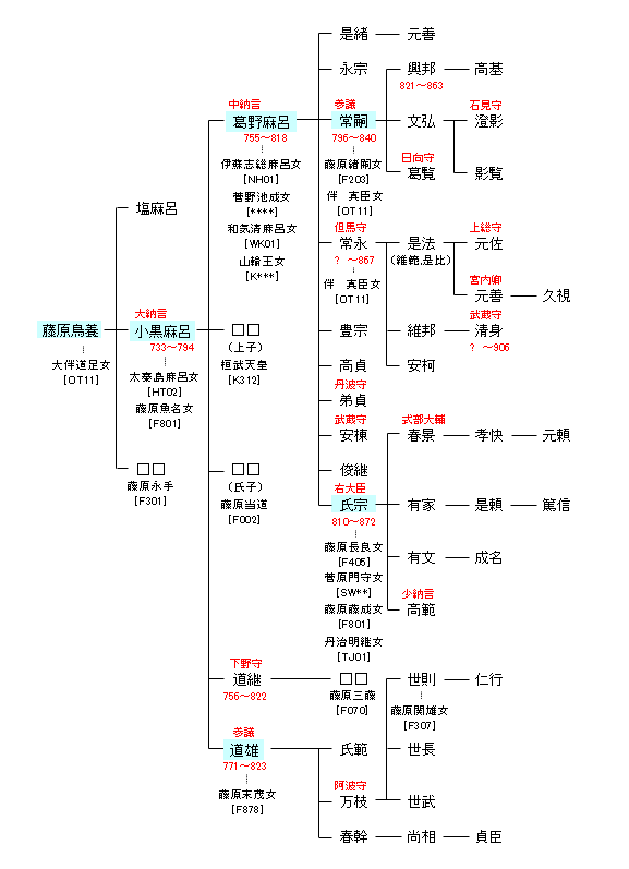 | F301:藤原房前 | 藤原鎌足 ― 藤原房前 ― 藤原鳥養 | F302:藤原鳥養 | ● |