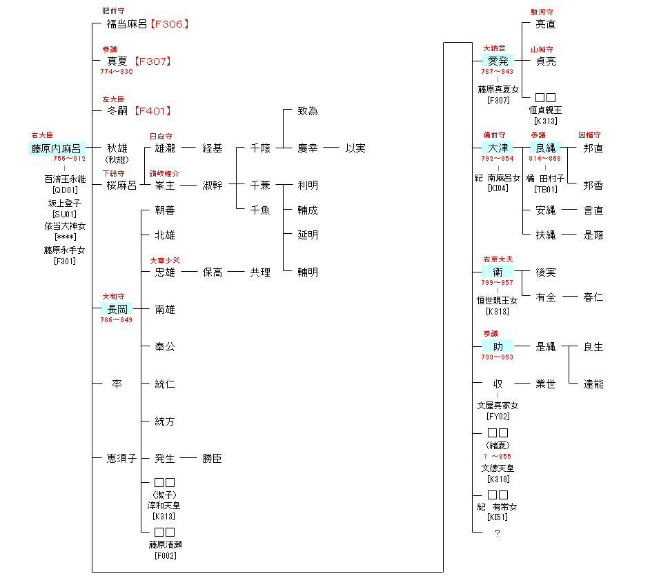 | F301:藤原房前 | 藤原鎌足 ― 藤原房前 ― 藤原内麻呂 | F305:藤原内麻呂 |