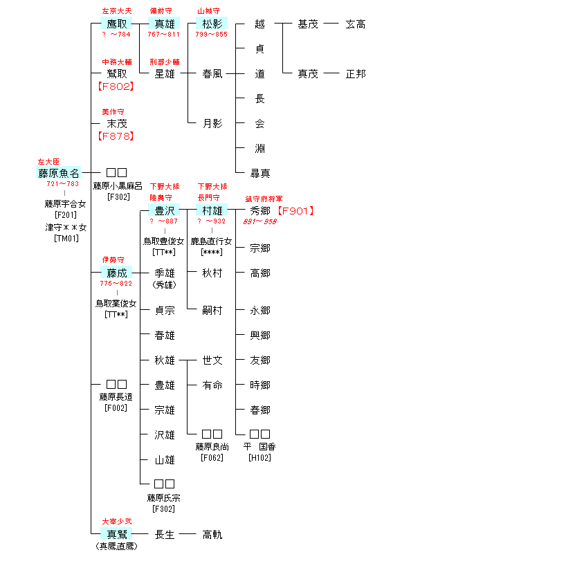 | F301:藤原房前 | 藤原鎌足 ― 藤原房前 ― 藤原魚名 | F801:藤原魚名 |
