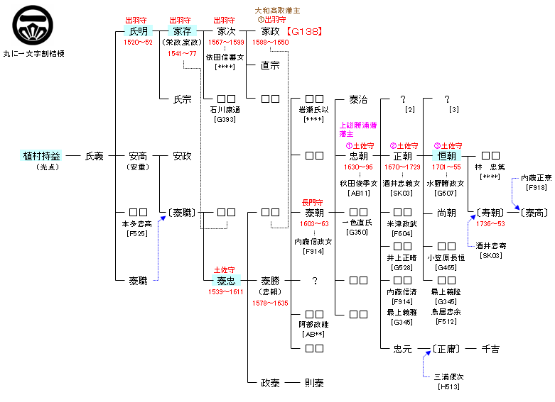 | G135:土岐頼忠 | 源 経基 ― 源 満仲 ― 源 頼光 ― 土岐光衡 ― 土岐頼貞 ― 土岐頼忠 ― 植村持益 | G137:植村持益 |