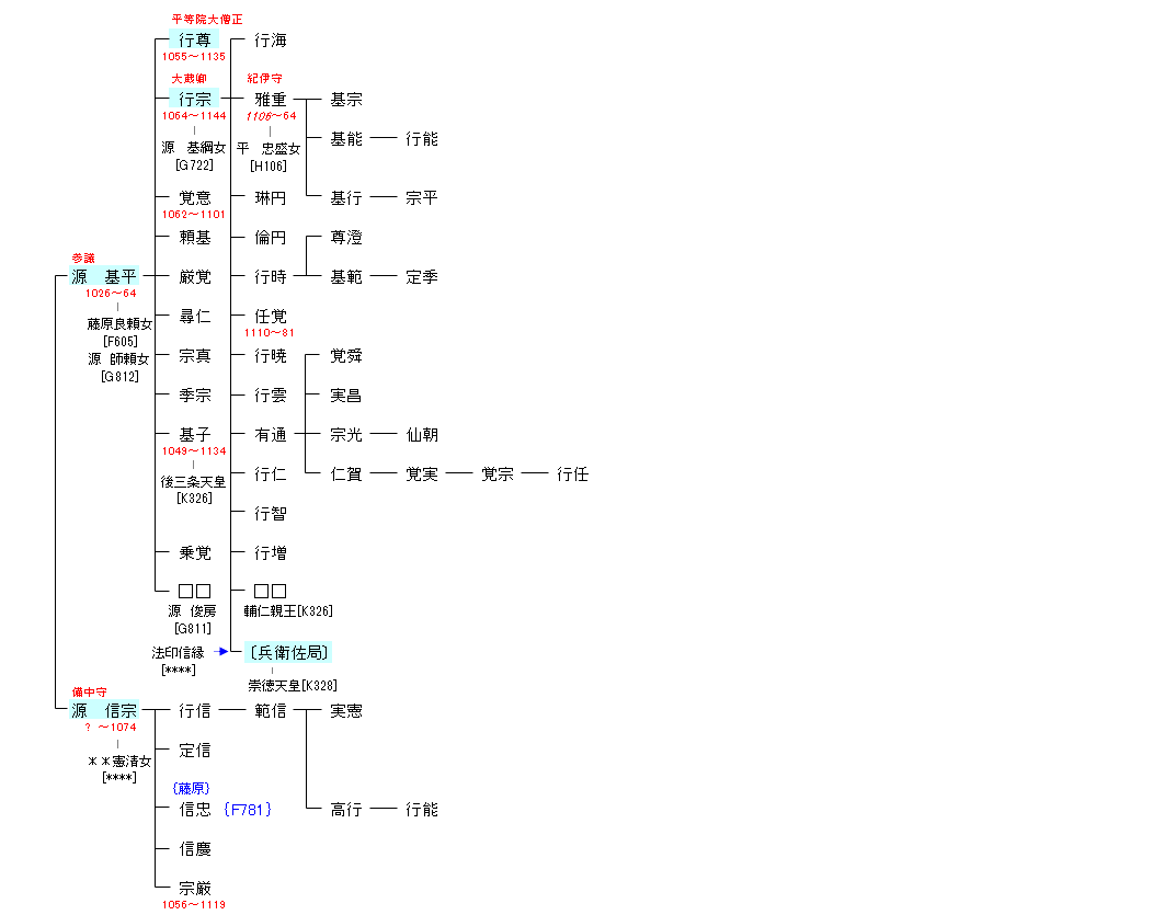 | K327:三条天皇 | 三条天皇 ― 基平/信宗 | G911:源 基平/信宗 | ● |