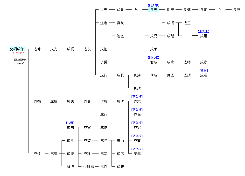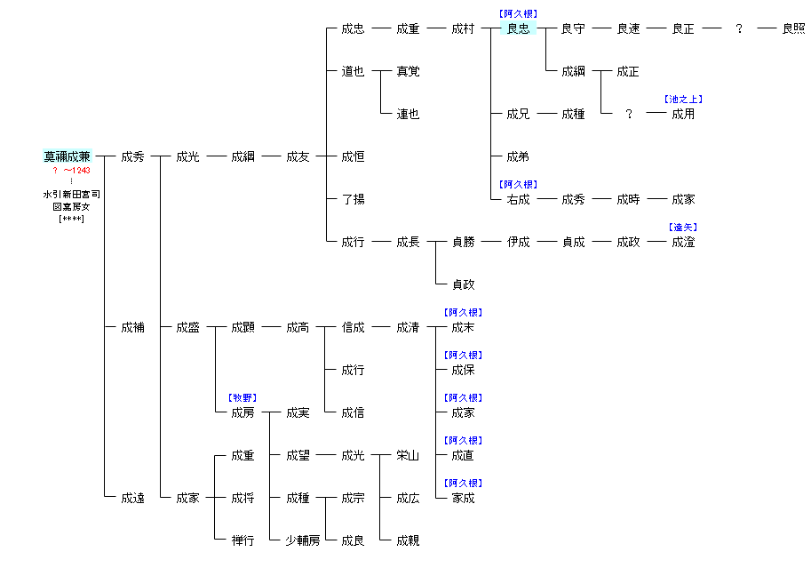 | H543:伊作貞時 | 平 高望 ― 平 将常 ― 平 忠通 ― 伊作貞時 ― 莫禰成兼 | H544:莫禰成兼 | ● |