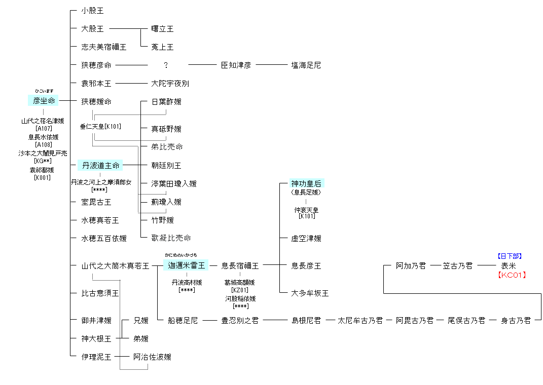 | K004:孝元天皇 | 孝元天皇 ― 彦坐命 | K009:彦坐命 |