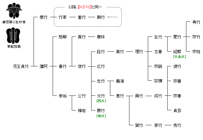 大部豊日 ― 大部船瀬足尼 ― 児玉惟行 ― 児玉貞行