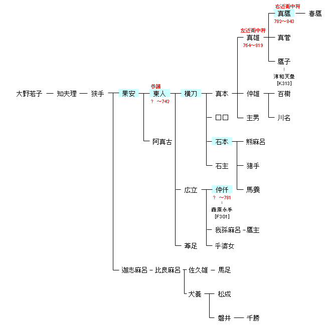 天平宝字年間(757~765年)の写経所文書に、「大野内侍」という人物が見え、仲仟のことではないか、と言われている。 淳仁朝の天平宝字7年(763年)1月に従六位下から従五位下、称徳朝の天平神護元年(765年)1月に藤原仲麻呂の乱での論功行賞により阿倍豆余里らとともに正五位上・勲四等を授けられる。 天平神護2年(766年)1月称徳天皇の永手邸行幸に際し従四位下、神護景雲2年(768年)10月、正四位下に進む。同3年(769年)2月の再度の永手邸行幸で、永手の子の家依,雄依ともども位を1階すすめられ、正四位上に叙された。 光仁朝の宝亀元年(770年)10月従三位に昇る。位階からこの時尚侍となり、同5年(774年)吉備由利の没後に後任として尚蔵を兼務したと思われる。宝亀9年(778年)9月、正三位に進む。天応元年(781年)薨去。