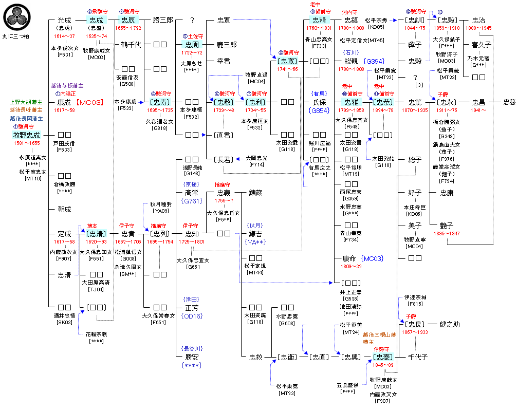 | MC01:牧野成継 | 蘇我石川 ― 田口川堀 ― 牧野成継 ― 牧野忠成 | MC02:牧野忠成 |