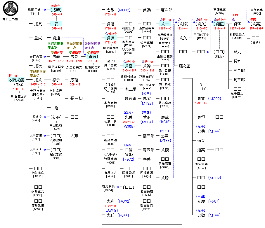 | MC01:牧野成継 | 蘇我石川 ― 田口川堀 ― 牧野成継 ― 牧野成儀 | MC04:牧野成儀 | ● |