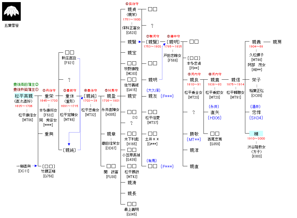 | MT13:松平重勝 | 松平親氏 ― 松平光親 ― 松平重勝 ― 松平英親 | MT14:松平英親 | ● |