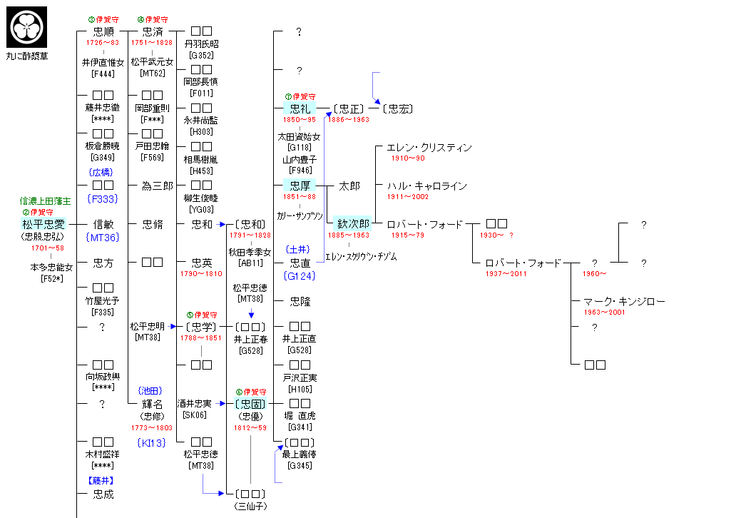 | MT38:松平忠晴 | 松平親氏 ― 松平利長 ― 松平忠晴 ― 松平忠愛 | MT39:松平忠愛 | ● |