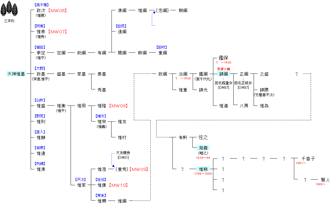 | MW01:大三輪大友主 | 大三輪大友主 ― 大神惟基 | MW05:大神惟基 |