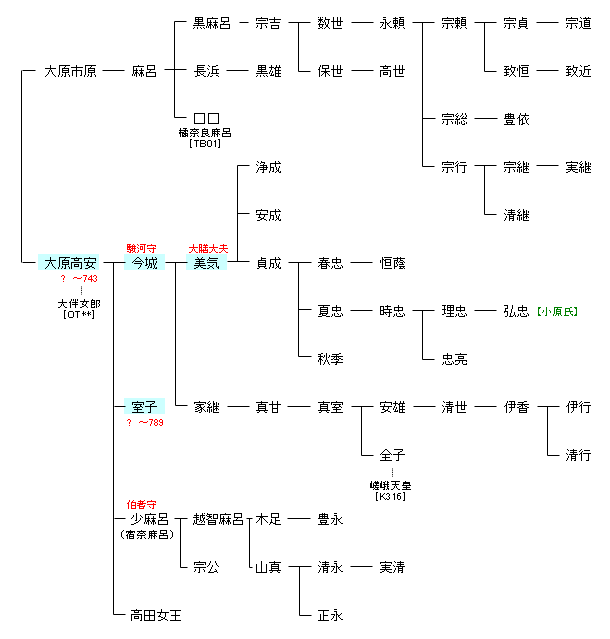聖武朝の天平11年(739年)4月の、高安王らが前年10月29日の上表文により大原真人姓を授かられ、臣籍降下した際、兄の今城,宿奈麻呂らとともに臣籍降下したと想定される。あるいは、天平11年以後の生まれか。 光仁朝の宝亀4年(773年)閏11月、無位から従五位下に叙され、この頃に後宮に出仕したものと推定される。父親の大原高安が天平14年12月19日(743年1月19日)になくなっていることから鑑みて、かなり遅い出仕であったものと思われる。 桓武朝の天応2年(782年)6月、正五位下。延暦2年(783年)には正四位上藤原教貴,紀宮子,平群邑刀自,藤原産子、正四位下の藤原諸姉に次ぐ従四位下に昇進し、後宮での地位を高めてきたが、それ以上の昇叙はなく、延暦8年(789年)10月に卒去。この時、「命婦」と記されている。