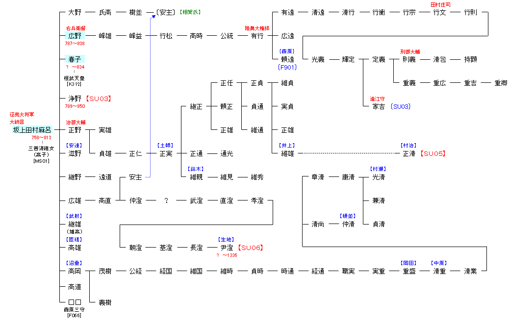 | SU01:坂上弓束 | 東漢 掬 ― 坂上弓束 ― 坂上田村麻呂 | SU02:坂上田村麻呂 |