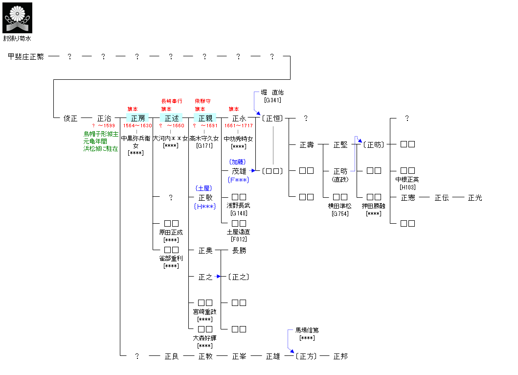 | TB19:楠木正遠 | 橘 諸兄 ― 橘 遠保 ― 楠木成綱 ― 楠木正遠 ― 甲斐庄正繁 | TB23:甲斐庄正繁 | ● |