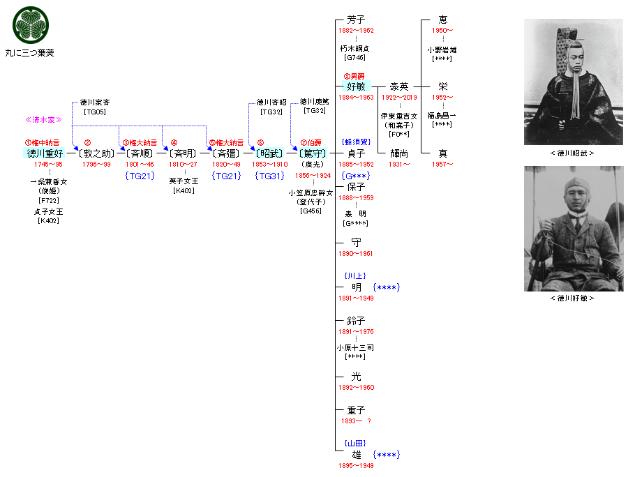 | TG04:徳川吉宗 | 徳川家康 ― 徳川秀忠 ― 徳川家光 ― 徳川吉宗 ― 徳川重好 | TG10:徳川重好 | ● |