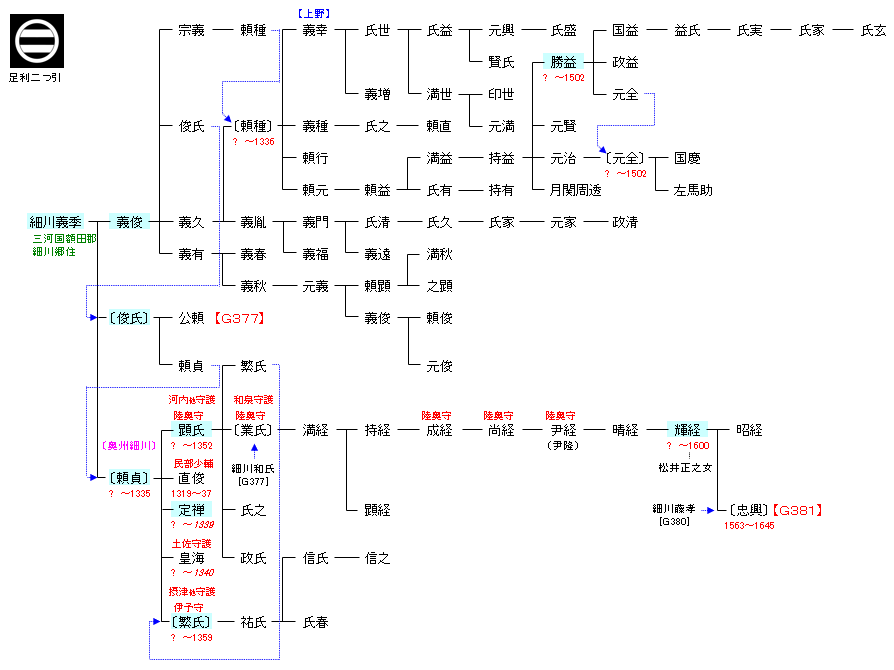 | G311:源 義国 | 源 経基 ― 源 頼信 ― 源 義国 ― 細川義季 | G376:細川義季 |